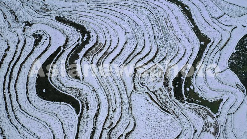 图片说明:2022年12月29日,贵州省从江县加榜梯田雪景。