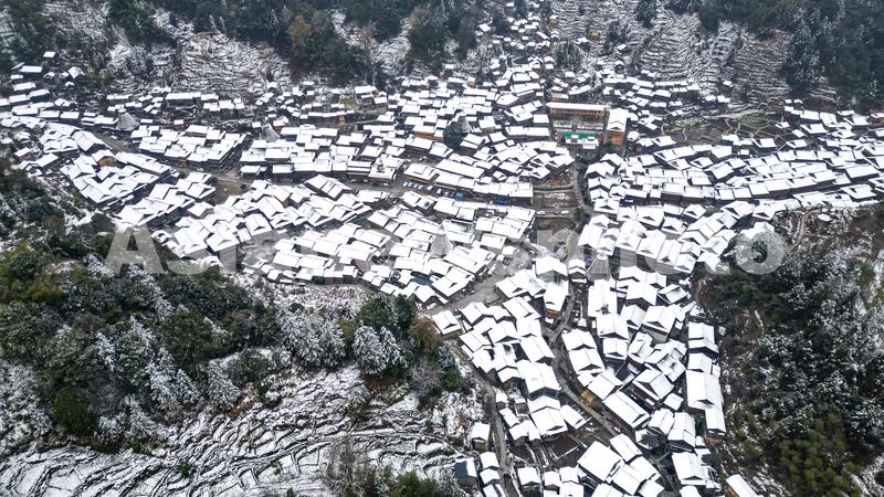近日,贵州省黔东南苗族侗族自治州黎平县境内多地迎来降雪天气。雪后的侗寨里民房、鼓楼、梯田银装素裹,宛如一幅精致的画作,美不胜收。