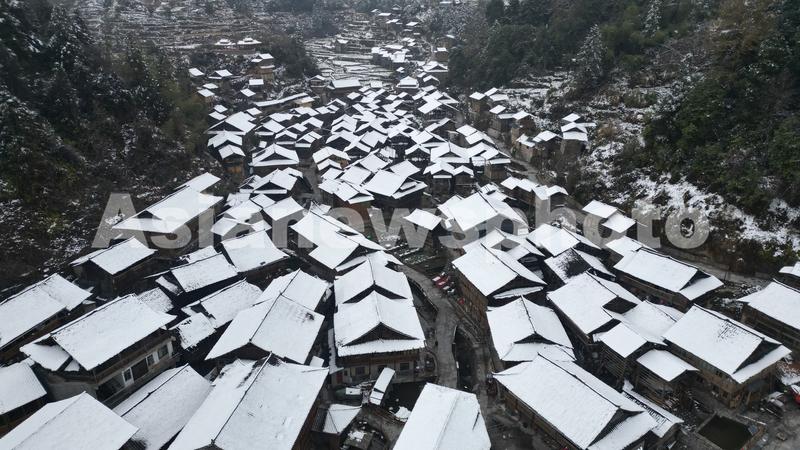 2022年12月29日,在贵州省黔东南苗族侗族自治州黎平县双江镇黄岗侗寨拍摄的雪后景色。