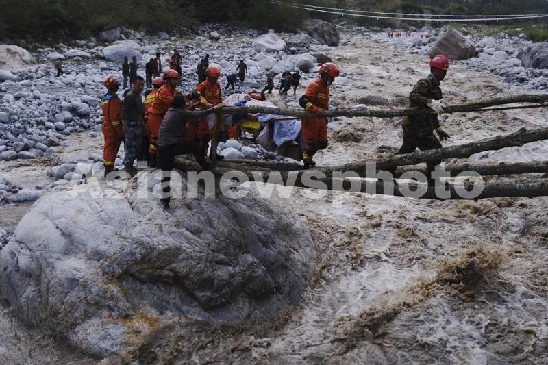 2022年9月5日,四川省森林消防总队甘孜支队消防员在地震震中磨西镇,转移青岗坪村受伤人员。当日12时52分,四川甘孜州泸定县发生6.8级地震,震源深度16千米。程雪力/亚洲新闻图片网
