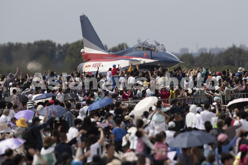 2022年8月28日,吉林长春,空军航空开放活动暨长春航空展上,歼-10战机滑行经过观礼区。空军八一飞行表演队被称为“中国蓝天仪仗队”,6架歼-10战机先后展示了六机分组开花、双机高速对头交叉、四机编队横滚等特技动作。匡林华/中国日报