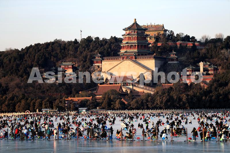 北京颐和园昆明湖冰场开门迎客 查看组图