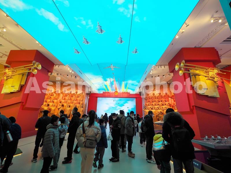 2023年1月1日,中国人民革命军事博物馆内,观众在参观“领航强军向复兴——新时代国防和军队建设成就展”。