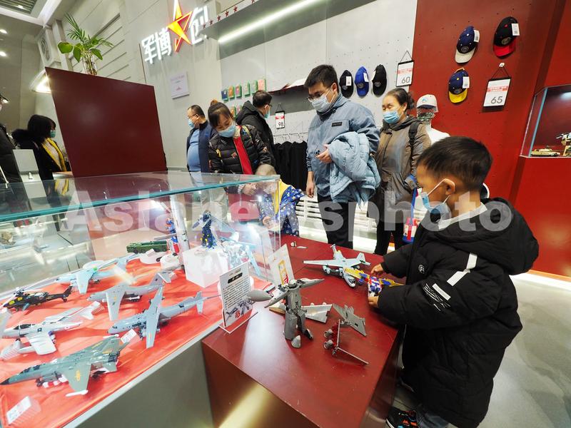 2023年1月1日,中国人民革命军事博物馆内,观众在选购文创纪念品。