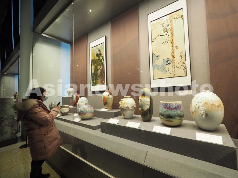 2023年1月2日,观众在中国工艺美术馆、中国非物质文化遗产馆内参观“松纳柴器——景德镇陶瓷柴窑烧造技艺展”。