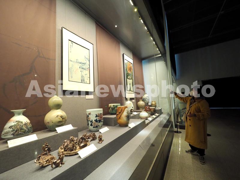 2023年1月2日,观众在中国工艺美术馆、中国非物质文化遗产馆内参观“松纳柴器——景德镇陶瓷柴窑烧造技艺展”。