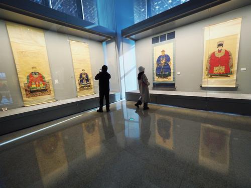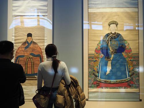 2023年1月2日,观众在中国工艺美术馆、中国非物质文化遗产馆内参观“祭如在——中国艺术研究院藏明清祖容像展”。