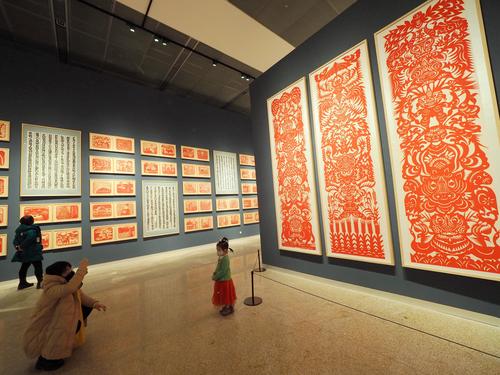 2023年1月2日,观众在中国工艺美术馆、中国非物质文化遗产馆内参观非遗展览。