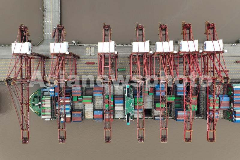 图片说明:2023年1月5日,长顶(EVER TOP)轮在宁波舟山港金塘港区大浦口码头2号泊位进行7662标箱的卸载作业。
