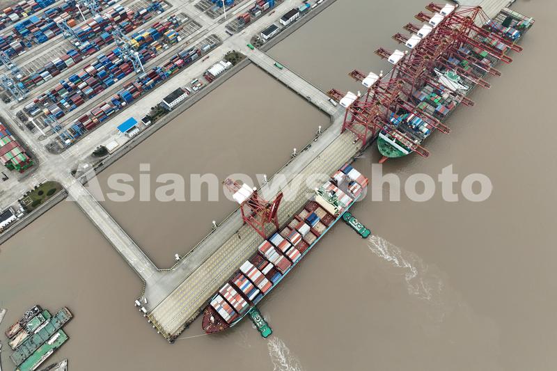图片说明:2023年1月5日上午,中国香港籍马士基昌巴尔(MAERSK CHAMBAL)轮靠泊宁波舟山港金塘港区大浦口码头1号泊位,计划在港装卸2390标箱,并装载小家电、机械配件等货物驶往 “一带一路”沿线国家。