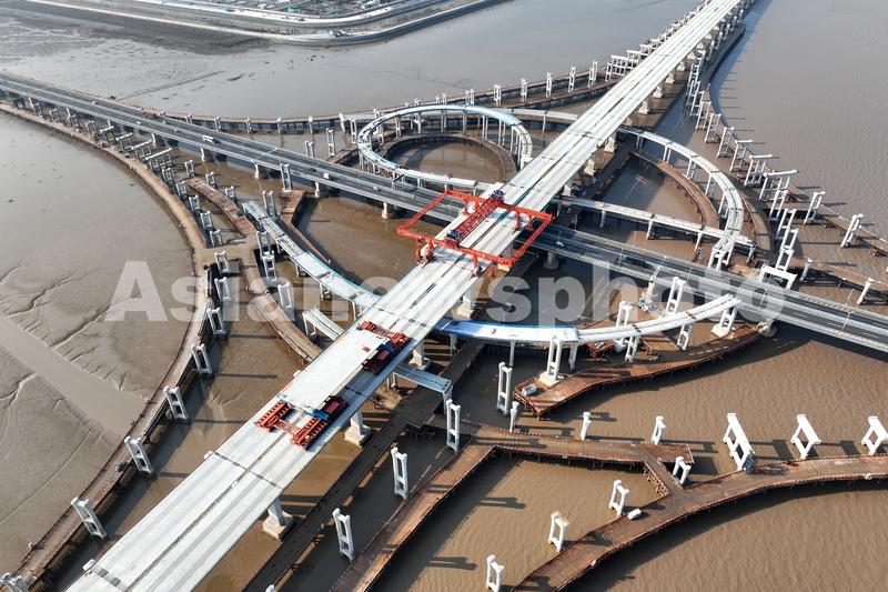2023年1月4日下午,在浙江交通集团杭甬复线宁波一期项目施工现场,一辆共有512个轮胎的运梁车承载着一片长50米、重达1800吨的整孔预制箱梁由北向南往威海互通方向挺进,并最终精准架设到威海高架主线桥W11号墩上。目前,主线整孔箱梁架设已超百分之九十(90.4%),进展顺利。