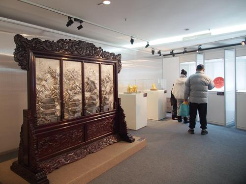 2023年1月5日,观众在北京中华世纪坛参观“匠心传承”——北京工艺美术师学院产教融合成果展。