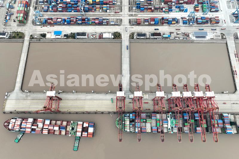 图片说明:2023年1月5日上午,中国香港籍马士基昌巴尔(MAERSK CHAMBAL)轮靠泊宁波舟山港金塘港区大浦口码头1号泊位,计划在港装卸2390标箱,并装载小家电、机械配件等货物驶往 “一带一路”沿线国家。