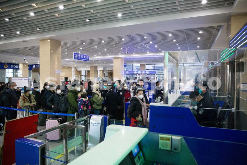 图片说明:2023年1月8日,二连出入境边防检查站执勤民警为旅客办理通关手续。