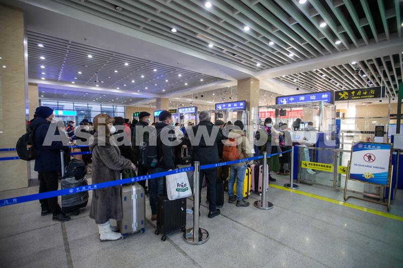 图片说明:2023年1月8日,旅客从二连浩特公路口岸有序排队通关。