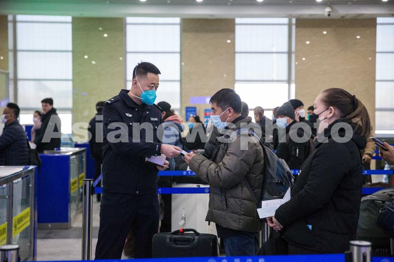 图片说明:2023年1月8日,二连出入境边防检查站执勤民警为旅客提供通关咨询。