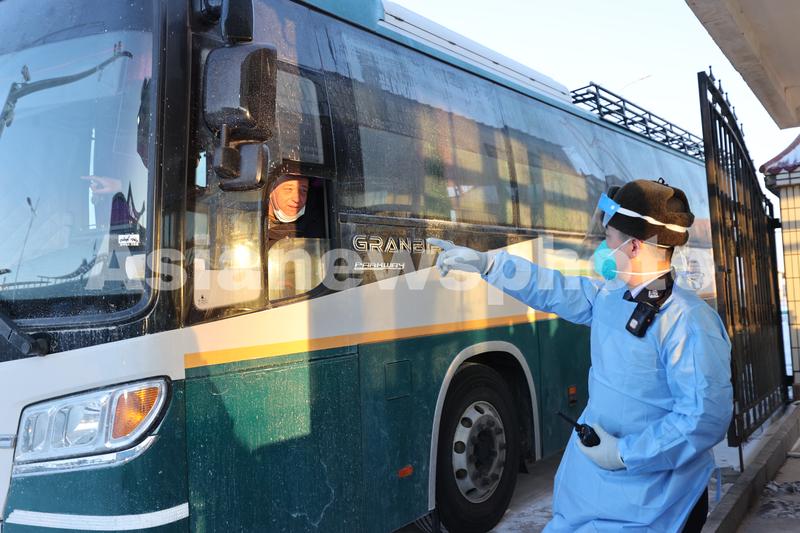 满洲里边检站移民管理警察引导国际客车入境。卢兵兵 摄