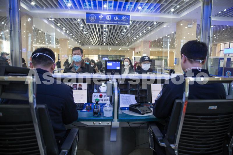 图片说明:2023年1月8日,二连出入境边防检查站执勤民警为旅客办理通关手续。