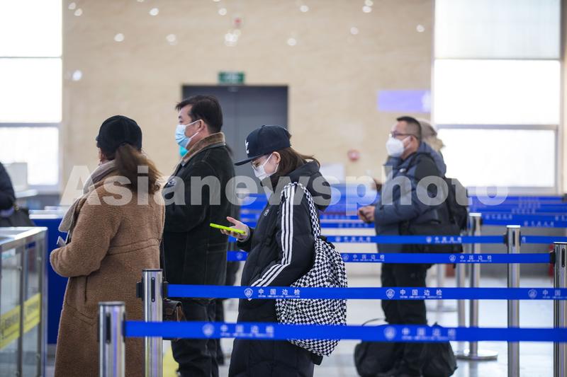 图片说明:2023年1月8日,旅客从二连浩特公路口岸通关。
