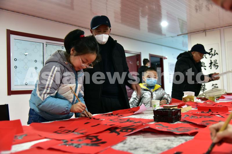 图片说明:1月7日,在山东省聊城市茌平区贾寨镇复兴少年宫,小朋友在书写春字、福字。