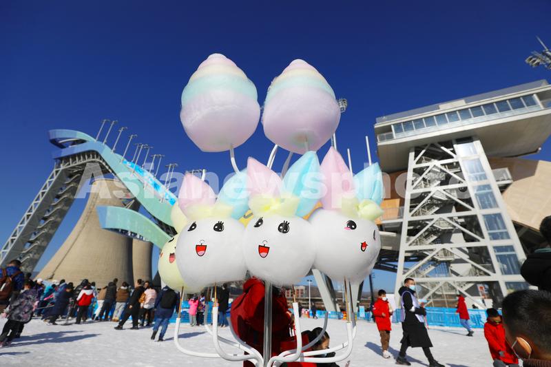 图片说明:1月8日,在北京首钢滑雪大跳台拍摄的“兔元素”棉花糖。