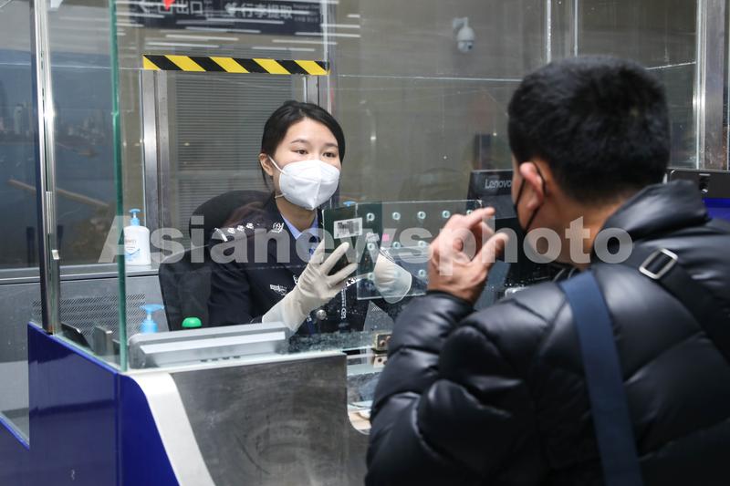 1月9日,山东出入境边防检查总站青岛机场边检站民警为入境旅客办理通关手续。
