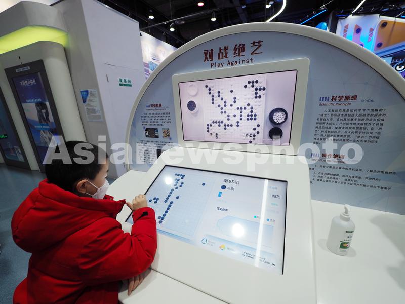 图片说明:2023年1月10日,中国科学技术馆,小朋友与围棋机器人对弈。