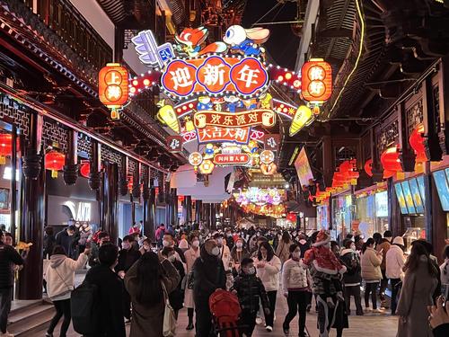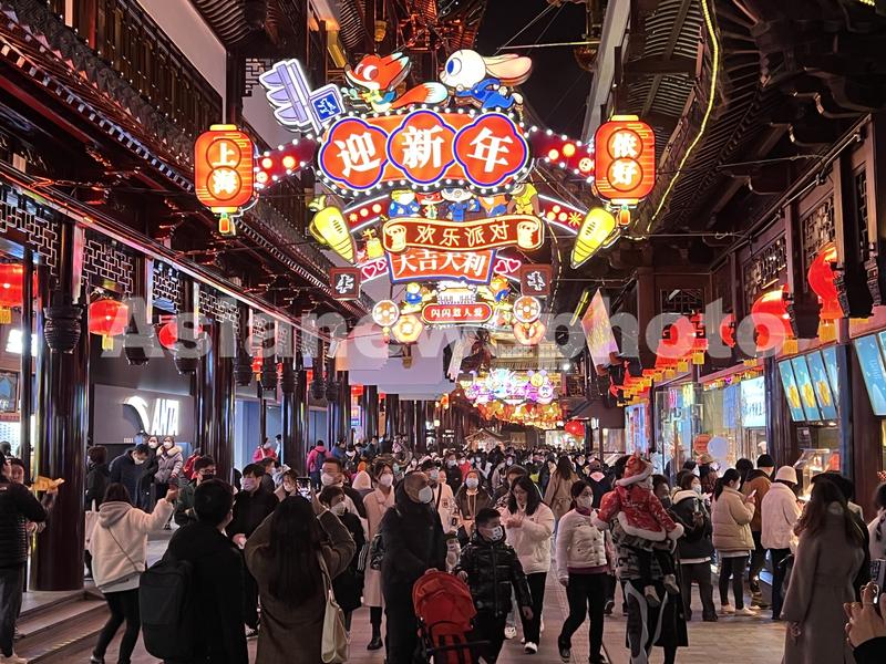 图片说明:2023年1月10日,上海“豫园迎新年”兔年灯会游人如织。
