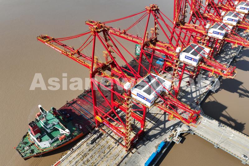 2023年1月12日中午,宁波舟山港金塘港区大浦口集装箱码头5号泊位,一台起升高度52米、前伸距70米、可满足目前全球最大集装箱船舶远控作业的桥吊,从 “振华32”运输船缓慢移动、顺利上岸。至此,甬舟公司为大浦口集装箱码头规划配置的22台桥吊也全部到位。