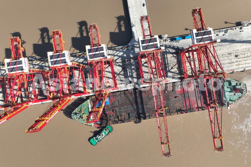 2023年1月12日中午,宁波舟山港金塘港区大浦口集装箱码头5号泊位,一台起升高度52米、前伸距70米、可满足目前全球最大集装箱船舶远控作业的桥吊,从 “振华32”运输船缓慢移动、顺利上岸。至此,甬舟公司新年引进的二批远程自动化桥吊(7台)全部安全上岸。随着这批桥吊的上岸,甬舟公司为大浦口集装箱码头规划配置的22台桥吊也全部到位(其中远控桥吊14台),进一步提升了码头作业能力。