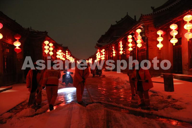 平遥古城迎来降雪天气 查看组图
