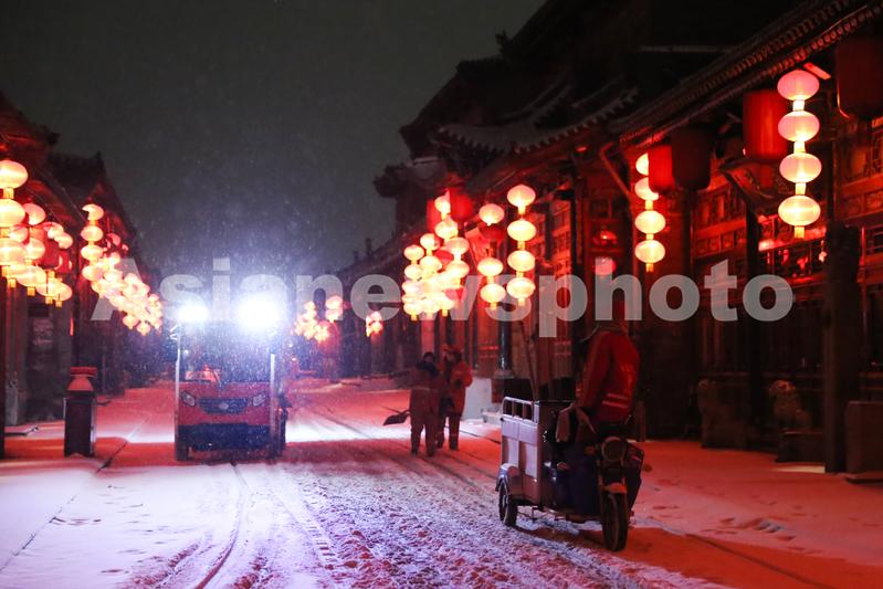 平遥古城迎来降雪天气 查看组图
