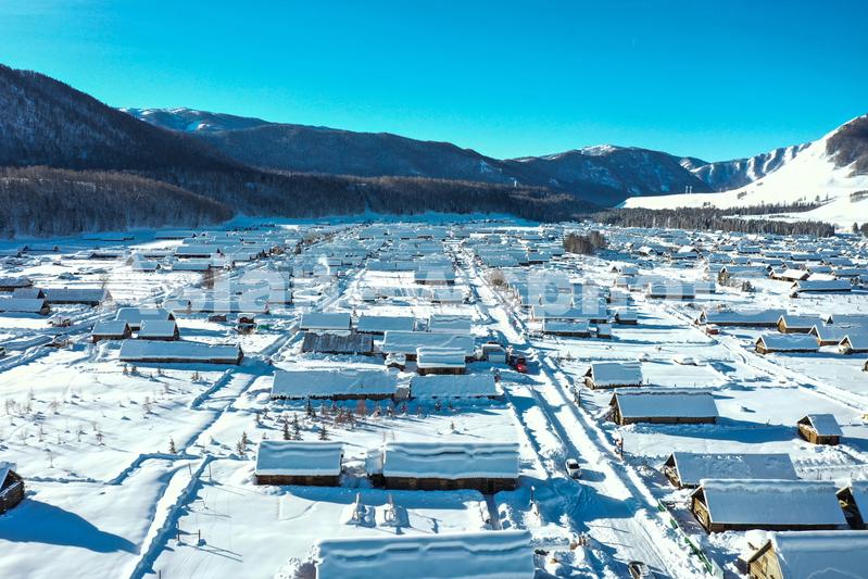 图片说明:2023年1月16日,禾木村图瓦人部落房屋(无人机拍摄)