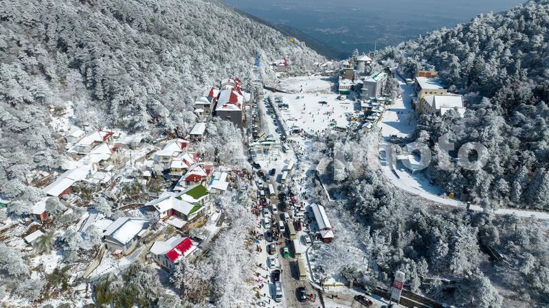 2023年1月16日,航拍江西庐山雪后初霁,银装素裹,大雪过后的庐山雾凇雪凇摇曳生姿,宛若人间仙境,吸引了不少游客前来欣赏雪景。