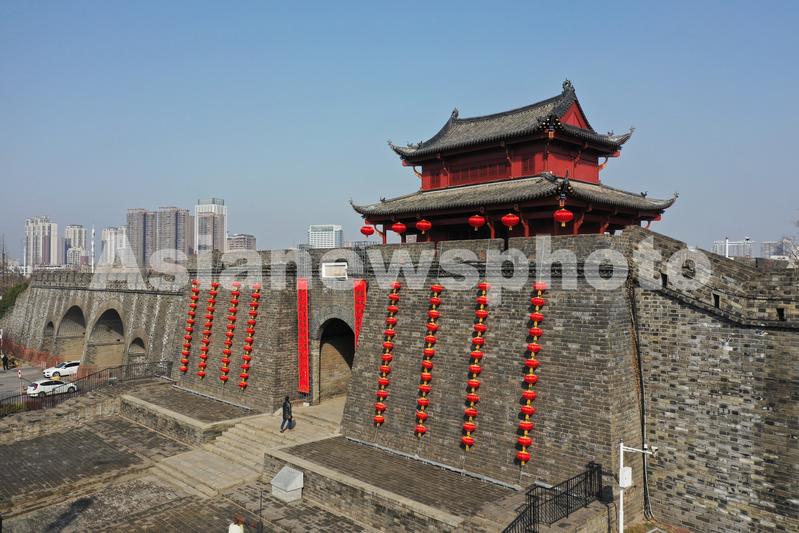 近日,高7米、宽1米的大红春联张贴在武汉武昌起义门的城墙上,这是起义门城墙上首次挂春联,烘托喜庆过年的氛围。