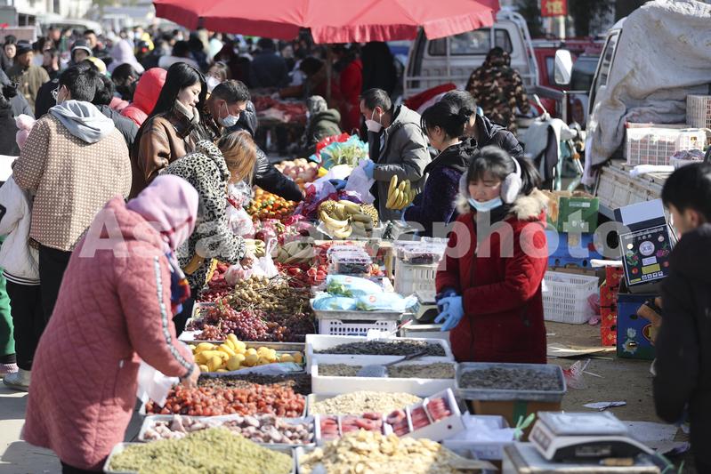 图片说明:2023年1月20日,人们在江苏省连云港市赣榆区城头镇年集上选购水果。
