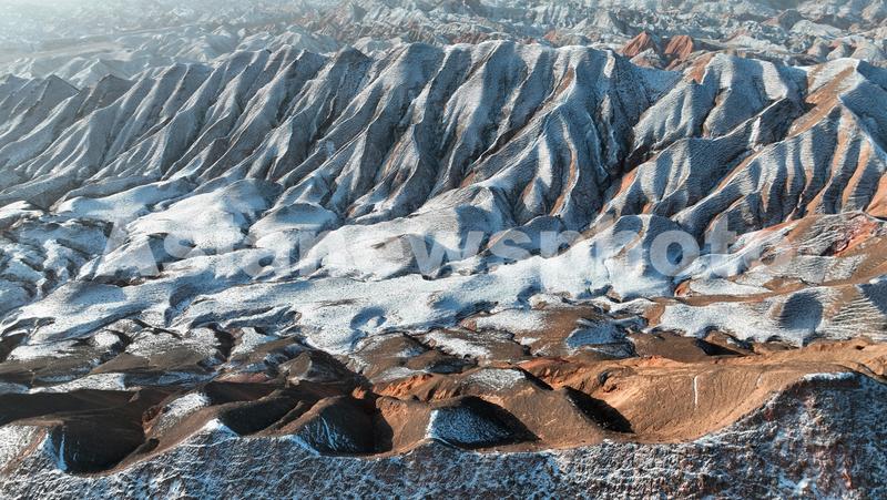 2023年1月19日,雪霁初晴的甘肃省张掖七彩丹霞景区,在晨光照耀下,丹山沟壑明暗鲜明、韵律奇妙、唯美如画。