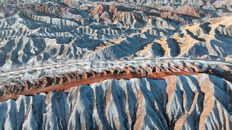 2023年1月19日,雪霁初晴的甘肃省张掖七彩丹霞景区,在晨光照耀下,丹山沟壑明暗鲜明、韵律奇妙、唯美如画。
