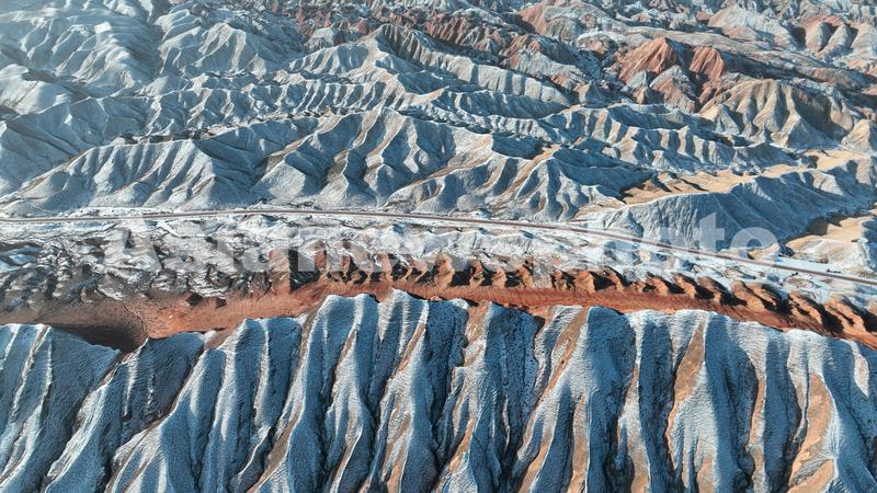 2023年1月19日,雪霁初晴的甘肃省张掖七彩丹霞景区,在晨光照耀下,丹山沟壑明暗鲜明、韵律奇妙、唯美如画。