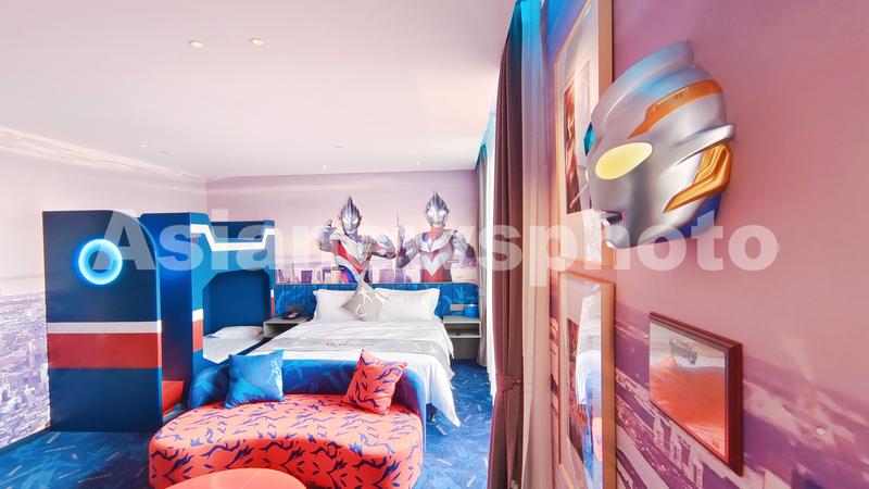 图片说明:2023年1月20日,上海,全国首个奥特曼主题酒店落户海昌海洋公园,全球首创的IP盲盒式客房向二次元粉丝和来沪旅游的游客揭开神秘面纱。