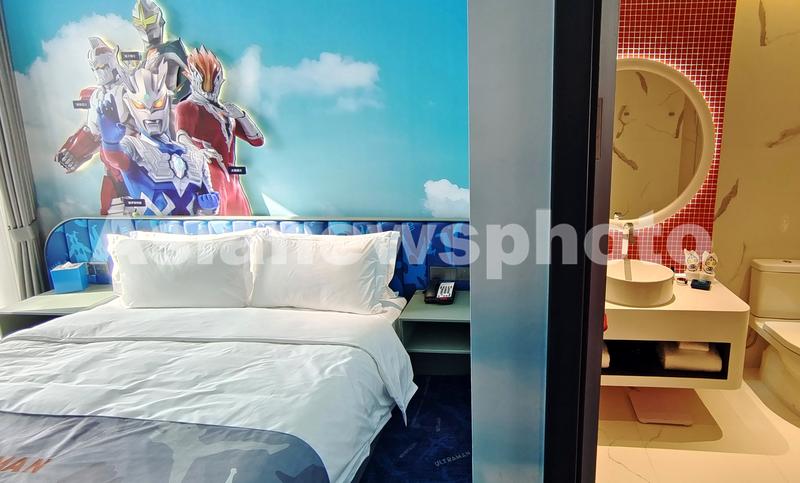 图片说明:2023年1月20日,上海,全国首个奥特曼主题酒店落户海昌海洋公园,全球首创的IP盲盒式客房向二次元粉丝和来沪旅游的游客揭开神秘面纱。