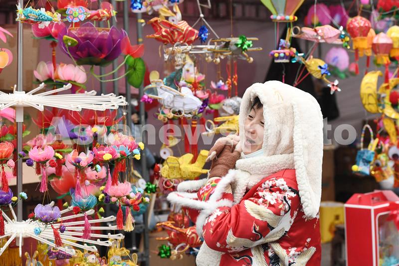 图片说明:2023年1月26日晚,人们在南京夫子庙景区选购花灯。