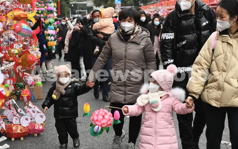 图片说明:2023年1月26日晚,人们在南京夫子庙景区选购花灯。