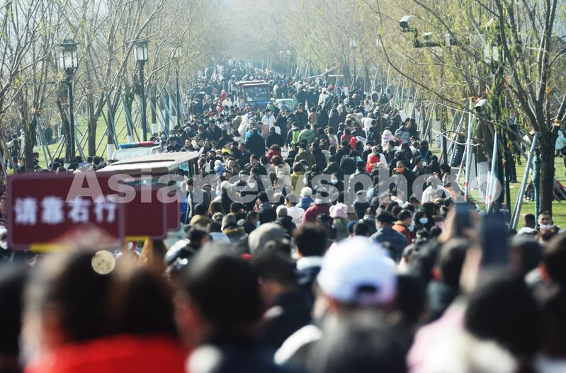 图片说明:2023年1月25日,杭州西湖白堤上是人头攒动。