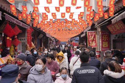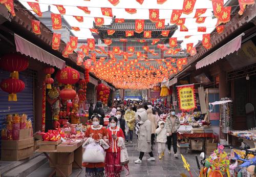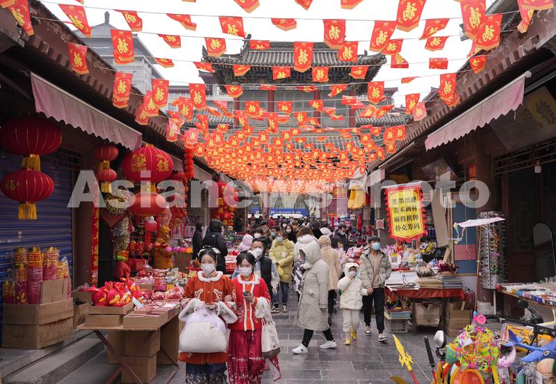 2023年1月25日,陕西省西安市莲湖区都城隍庙会,热闹非凡,游人如织,游客前来逛庙会、购物、祈福。