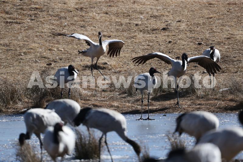 图片说明:2023年1月25日,南省昭通市昭阳区大山包镇车路村,黑颈鹤翩翩起舞。