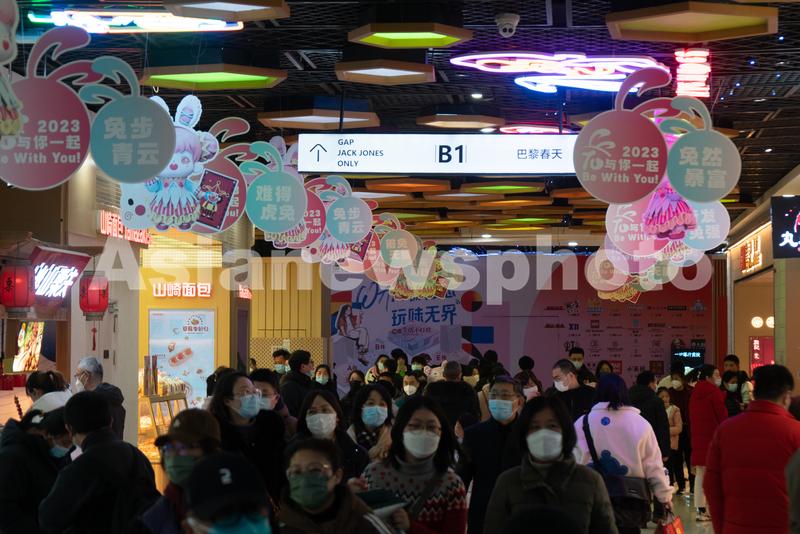 图片说明:2023年1月27日,上海,五角场商圈的下沉式广场和百联又一城、合生汇、万达广场等购物中心内顾客云集,人气火爆。