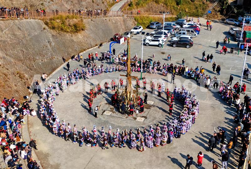图片说明:2023年1月27日,在广西融水苗族自治县安太乡元宝苗寨,打同年活动正在进行。
