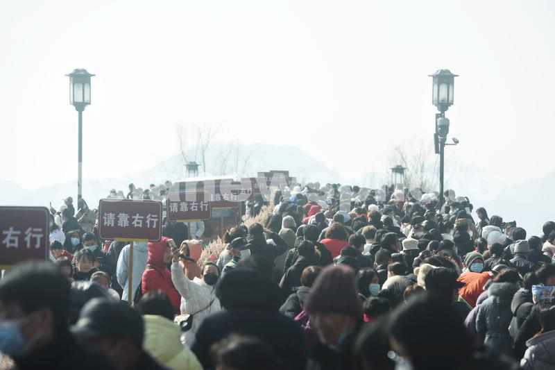 图片说明:2023年1月25日,杭州西湖断桥上是人头攒动。