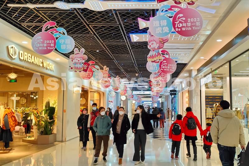 图片说明:2023年1月27日,上海,五角场商圈的下沉式广场和百联又一城、合生汇、万达广场等购物中心内顾客云集,人气火爆。